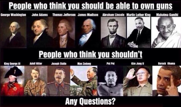 comparisons like this are utterly ridiculous. Literally the only argument you guys ever seem to revert back to ultimately is 'OH ITS THIS AND THAT AMENDMENT'. Laws can get outdated you know. I'm sure in the time of self-policing then carrying a weapon was normal but in this day and age it's need must. You have guns because there are guns that you feel you need to defend yourselves from. If there were no guns in the first place, you wouldn't feel the need for guns. I really do struggle to understand the necessity of it at all. Sport, sure. We have sport here in the UK too, but also have crazy strict regulations. What will it take for you to understand that the situation has gotten out of control? Your family member to be gunned down in a disagreement? I think the saddest part of that would be the attitude of 'If he had had a gun he could have defended himself'. Arming people who aren't responsible is just stupid. Being responsible enough to drive is , rightly or wrongly, determined by age - being responsible enough to own a firearm should be a much more difficult process than it is. Let's just say you never hear anyone say in the UK 'I wish we had guns'. Why? Because it's outrageous. YOU DONT NEED THEM.